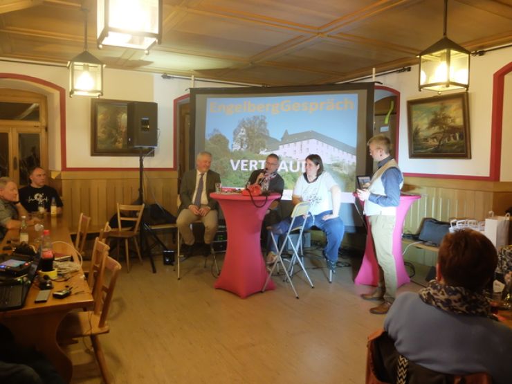 Damit bestätigte sich auch eine Weisheit des Abends: Wir vertrauen immer! Diese zutiefst menschliche Eigenschaft lebt in uns vom ersten Atemzug. Als soziale Wesen, können wir gar nicht anders als vertrauen. Schwierig ist es, wenn wir aus einer Phase der relativen Sicherheit kommen. Die Sicherheit in Job, Einkommen, Sozialsysteme, Demokratie, Frieden, Nachbarschaft, Kirche, Technologie, ... entwöhnt uns von Vertrauen. Die individuelle Freiheit funktionierte vielfach unabhängig von Nachbarn, Arbeitgebern, Journalisten, politischen oder kirchlichen Verantwortungsträgern. Wenn nun plötzlich vieles gleichzeitig in Frage steht, sind wir verunsichert und haben keinen Zugriff mehr auf diese Menschen oder einen Gott. Das EngelbergGespräch hat dazu beigetragen, dass es wieder wachsen kann. Möglich gemacht haben das die Ehrenamtlichen von KAB sozial & gerecht sowie die Kooperationspartner Kolping, Martinusforum, Caritas und Kloster Engelberg.